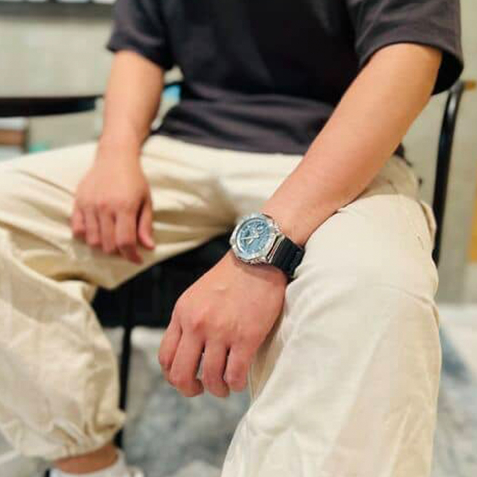 让我来为您介绍一款尺寸更小、更轻薄的G-SHOCK新型号小方块。它采用了带有未来感的方形设计,还非常贴合手腕。可以与智能手机连接,实现轻松操作,还配备了计步功能!荧光绿色非常抢眼,真是一款时尚感十足的手表!