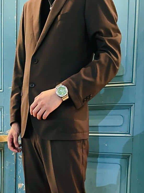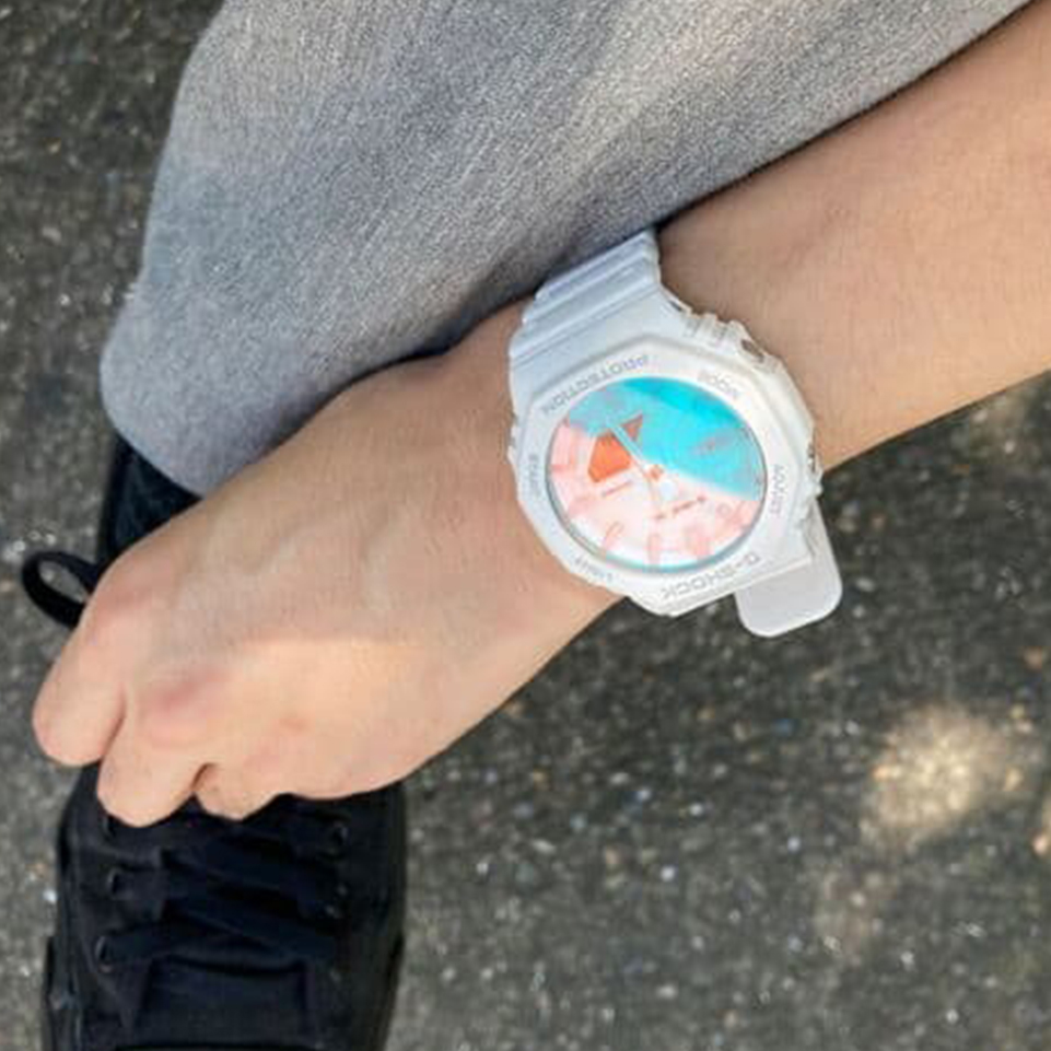 彩色表盘搭配金属表壳表带,手表整体的光泽很有高级感,非常有气场!这次佩戴的“GM-2110D-3A”是清爽的绿色,可以成为穿搭的亮点所在!作为时尚单品来说也是很容易掌控的哦!