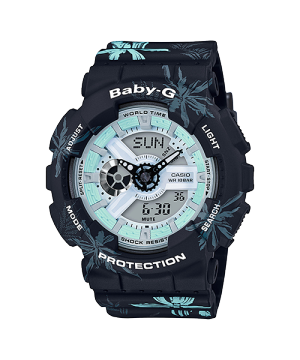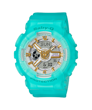 为活力女性设计的休闲手表BABY-G。这次的型号将虚拟而梦幻的世界观融入到设计中。基础型号为以各种部件复杂组合而成的设计特点的BA-110。在表圈、表带和可见部分均采用有光泽感的偏光涂装。表盘的树脂部分采用珍珠涂装,中央的Y形部分装饰有全息图层。多彩的角度变化使得复杂的设计在不同的视角下都能美丽而丰富地呈现。每次扭动手腕都会释放出不同的光芒,是一款注入了梦幻魅力的手表。
