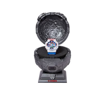 G-SHOCK I 变形金刚联名新品登场。G-SHOCK与变形金刚IP都诞生在80年代初,时间让两者都产生出了许多经典的元素。本次的联名产品就是使用了G-SHOCK中经典的三款基础型号,结合变形金刚IP中人气很高的三位经典人物。 GA-110 擎天柱、DW-6900 大黄蜂、DW-5600 威震天,设计上使用了三个人物的配色让粉丝们第一眼就能知道是那个角色。图案则抽象的融入了三个人物的一些元素,当然最容易分辨他们阵营的徽章图案也放入了设计中。为了更加能让变形金刚的粉丝们引起共鸣,不但是手表我们把表盒也做了特别的设计。把变形金刚们共同的家园-赛博坦星球加上G-SHOCK的元素,设计出了G赛博坦表盒。