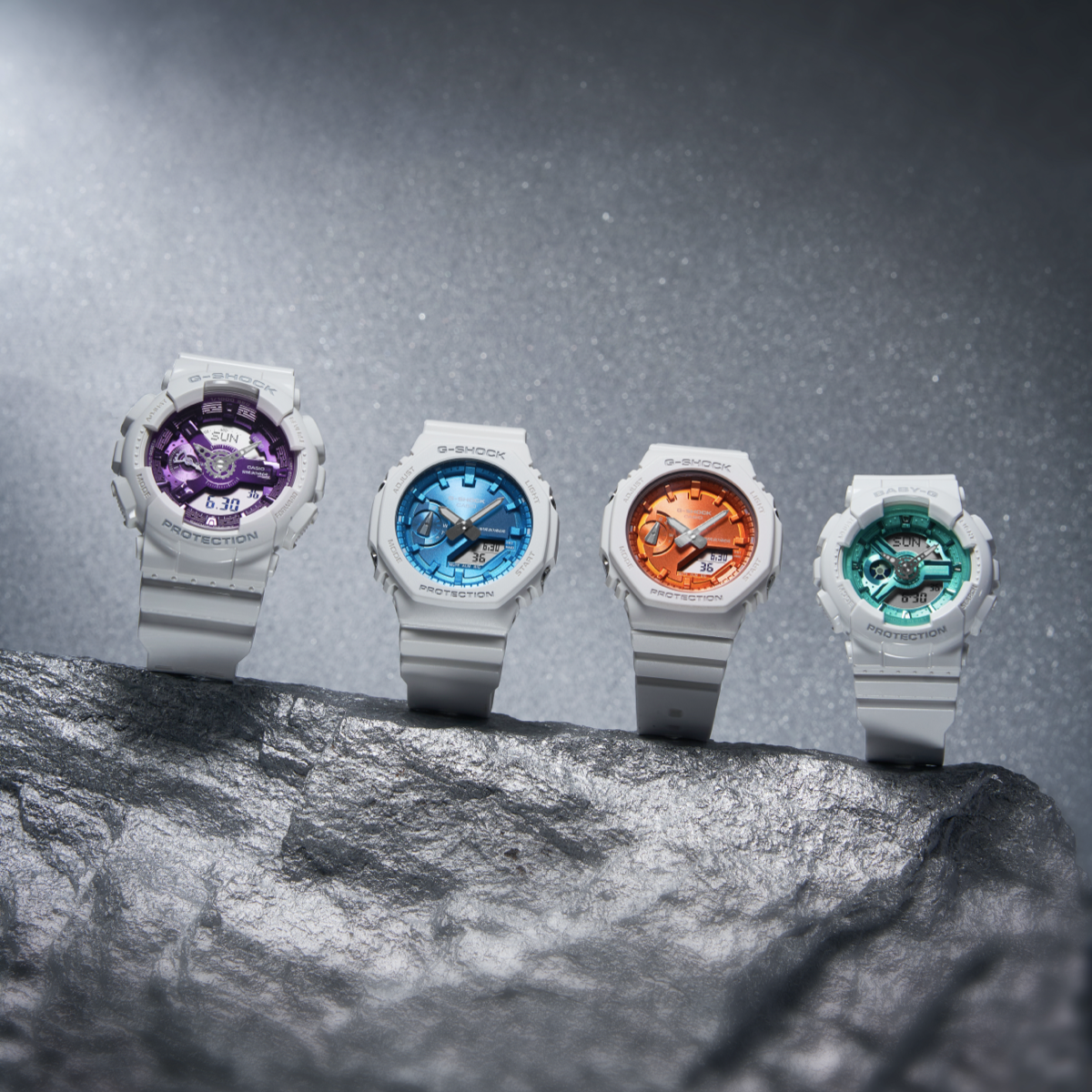 从左至右:GA-110WS-7A、GA-2100WS-7A、GMA-S2100WS-7A、BA-110XWS-7A -
