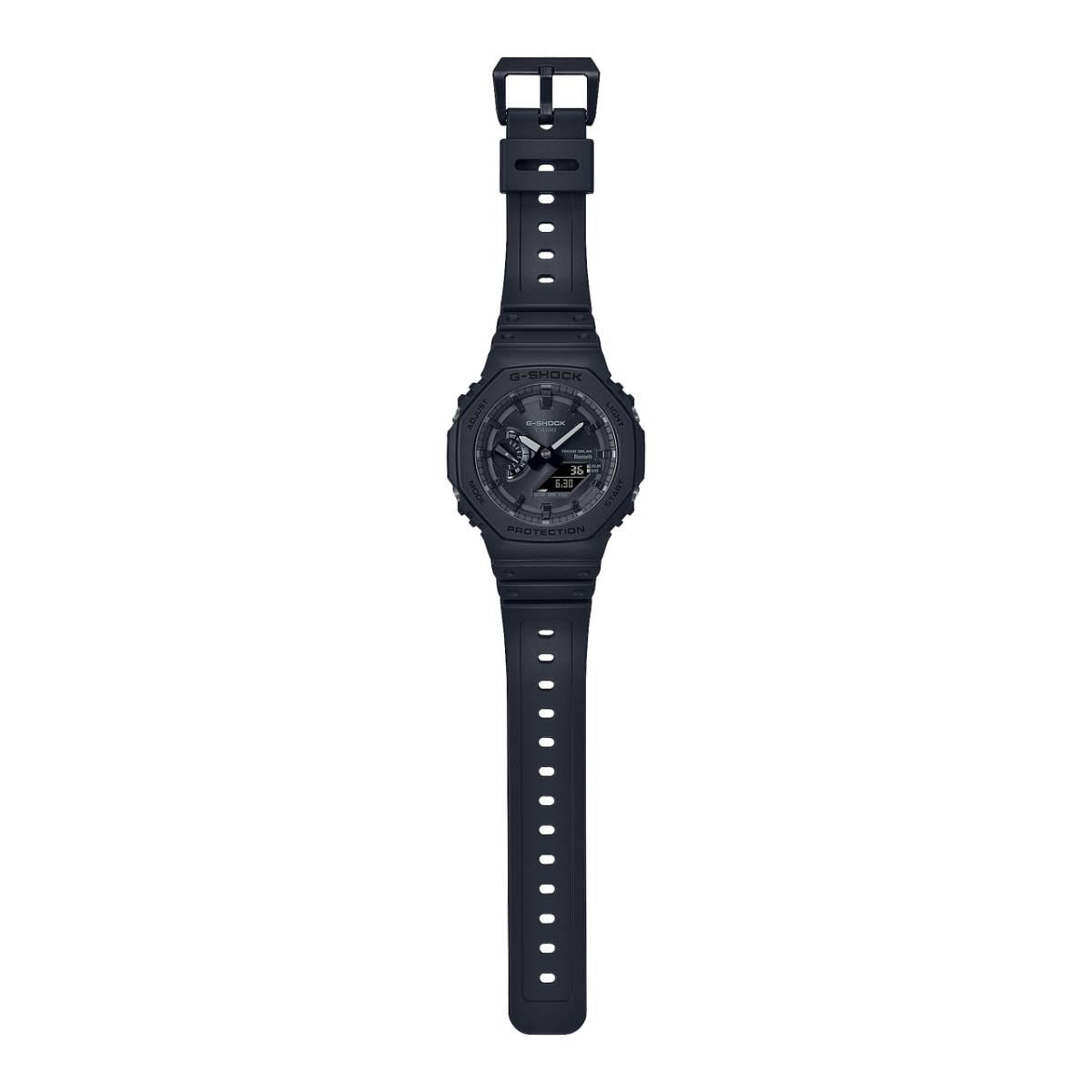 GA-B2100 与 GA-2100 同样承袭早期 G-SHOCK 标志性的八角形外观,同时新增智能手机连接和大容量太阳能动力。GA-B2100 中还融入碳纤核心防护构造,延续与初代型号同样出众的贴合体验。