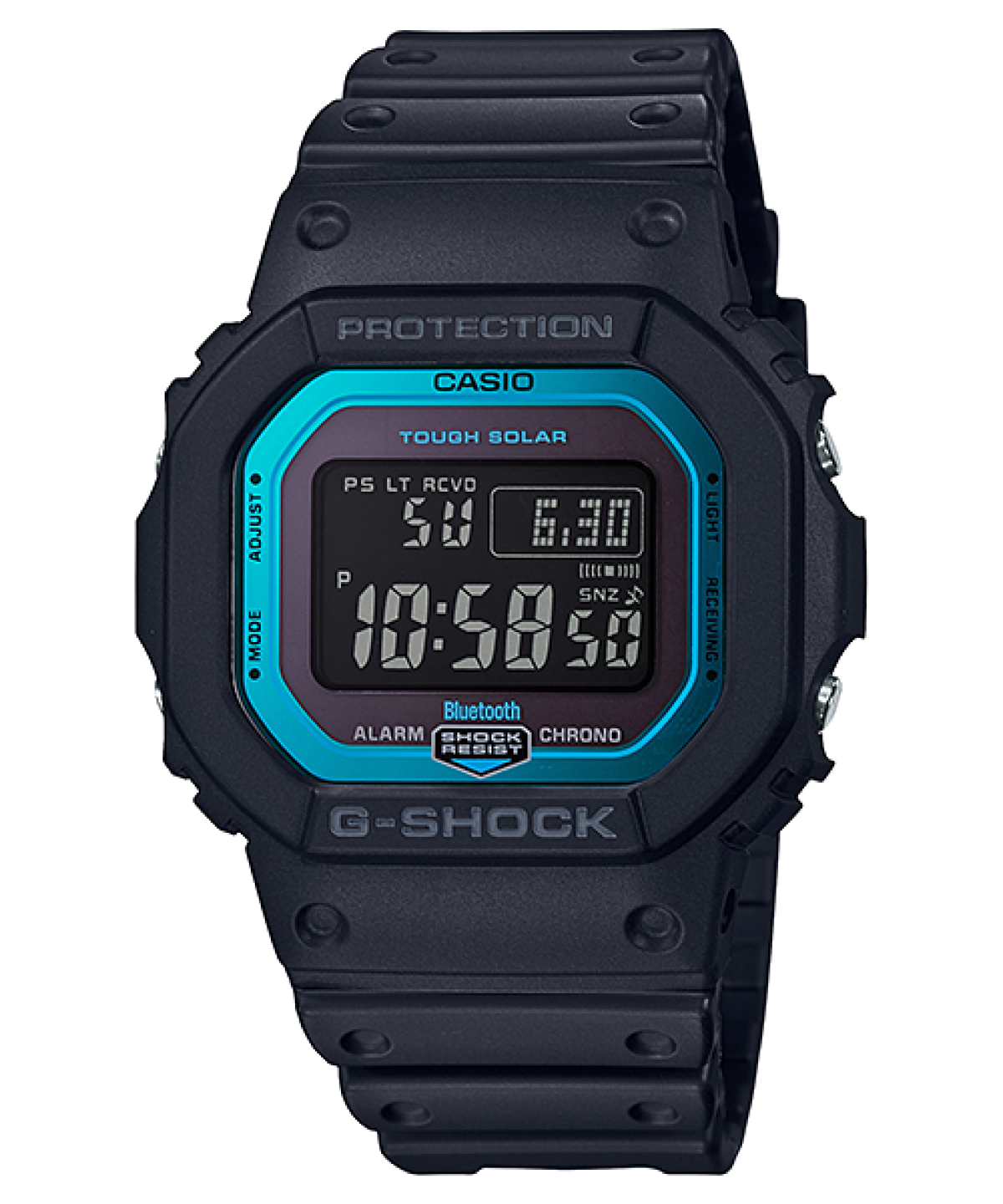 和初代型号DW-5000C外观一致,不断进化的方形设计5000/5600系列的新追加表款。 在功能方面搭载了追求时间精度的蓝牙连接和六局电波功能。可以连接手机APP进行校时,在世界6局标准电波对应区域内,可接收电波进行自动时间修正。